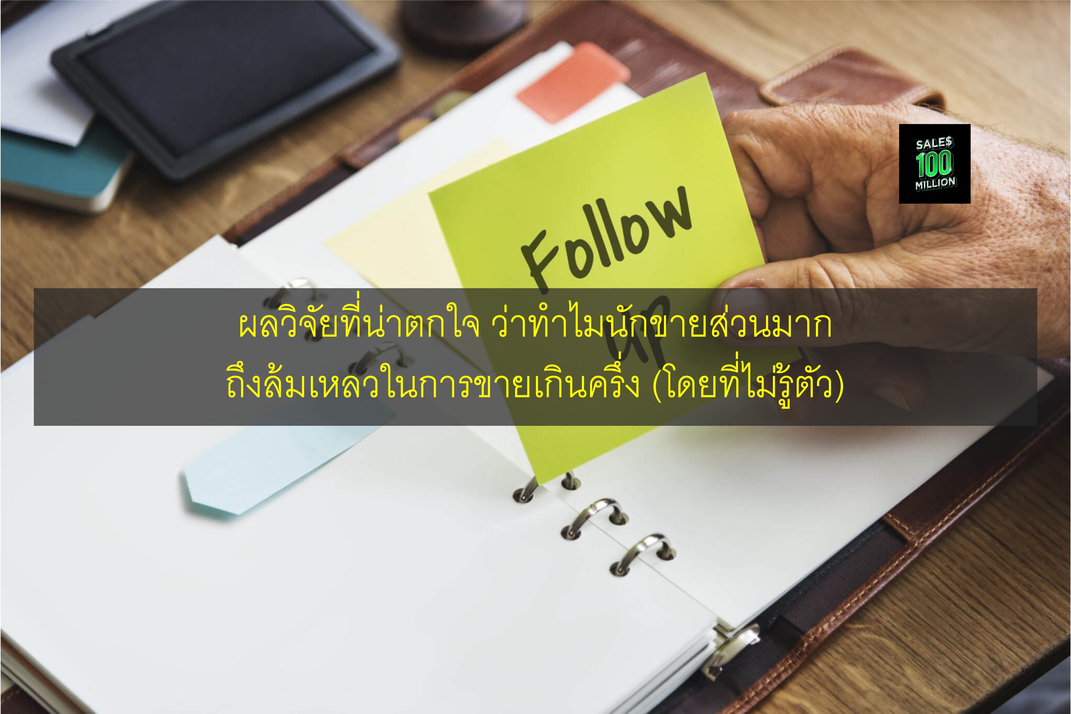 นักขายจำนวนมากพลาดโอกาสในการปิดการขายไปอย่างน่าเสียดายโดยที่ไม่รู้ตัว จากผลวิจัยและการดูแลลูกน้องนักขายมากกว่า 10 ปีของผมจึงสรุปได้สั้นๆ เลยครับว่าสาเหตุหลักคือ “การไม่ติดตามงาน (Lack of Follow-up)” อย่างสม่ำเสมอและมีประสิทธิภาพ ซึ่งผมดันไปเจอผลวิจัยที่น่าตกใจและแทบจะตอบโจทย์ที่ผมข้องใจสมัยเป็นไก่อ่อนทันทีว่าเพราะสาเหตุเหล่านี้เองที่ทำให้ผมปิดการขายไม่ได้ ดังนี้ครับ